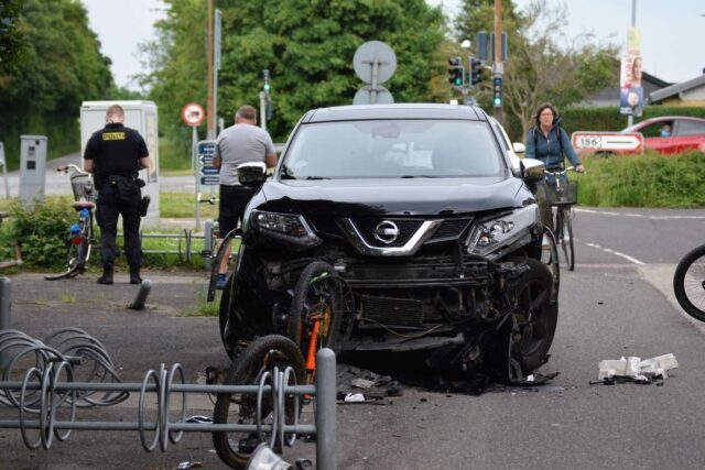 Der er ikke sket personskade på stedet, men både bil og flere cykler er smadret i forbindelse med sammenstødet.