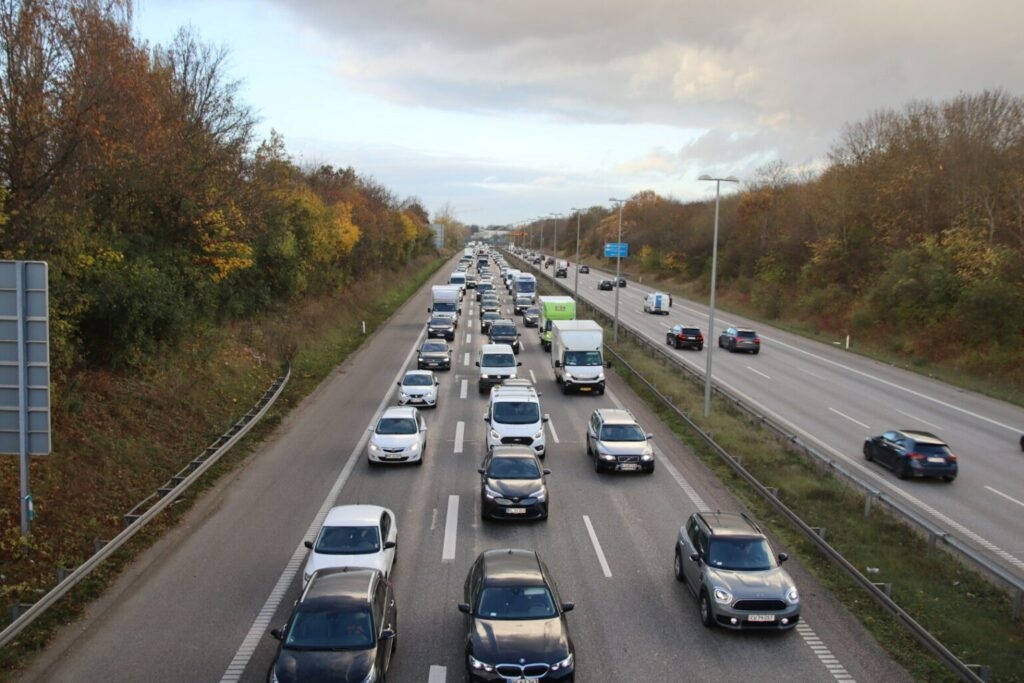 I forvejen var der annonceret vejarbejde, som mandag morgen gør, at trafikken triller ekstra langsomt.